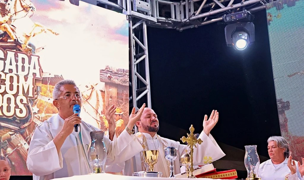 “Sou padre, mas também sou filho e neto de vaqueiro. Cresci dentro dessa cultura, vendo a luta e a fé do homem do campo. Hoje, celebrar aqui em Caldeirão Grande é um momento de muita gratidão. Sabemos que não é fácil organizar uma festa dessa dimensão, mas percebemos que tudo foi feito com muito coração. A missa é também uma forma de rezarmos pela chuva, porque a seca tem sido muito dura. Os agricultores enfrentam dificuldades com a água e com a alimentação dos animais, e só nos resta confiar em Deus para que venha o quanto antes esse alívio para o sertão.”