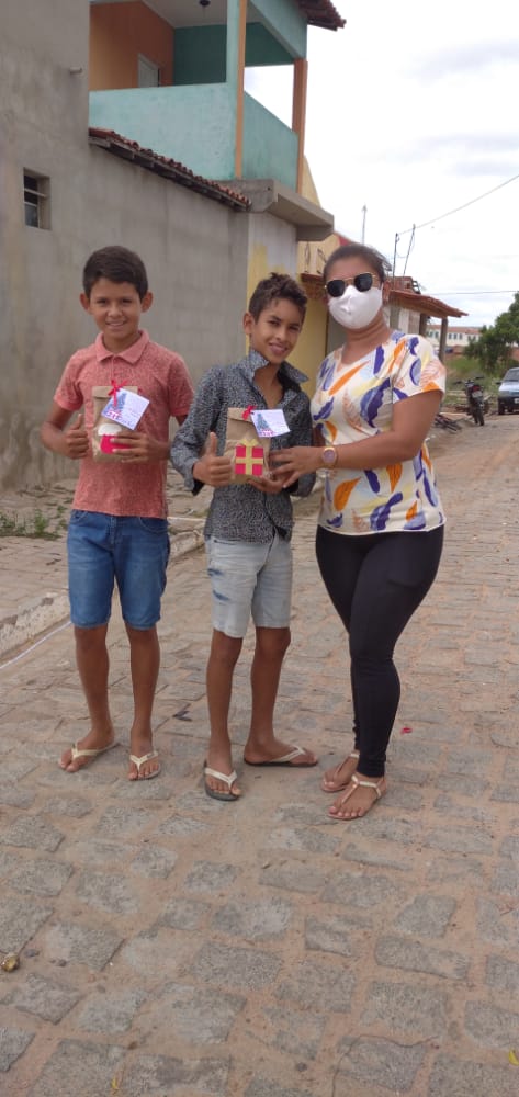A entrega, que marcou o encerramento das atividades do SCFV neste ano de 2020, foi realizada na segunda-feira (07) e terça-feira (08). As lembrancinhas foram entregues pelas monitoras Mayane Alves, Keytch Rodrigues, Rayane Andrade, Graciele Santiago, e Fabiana Carvalho.