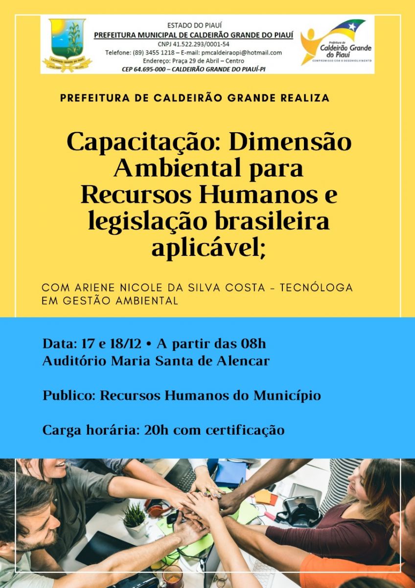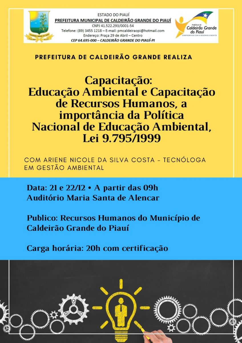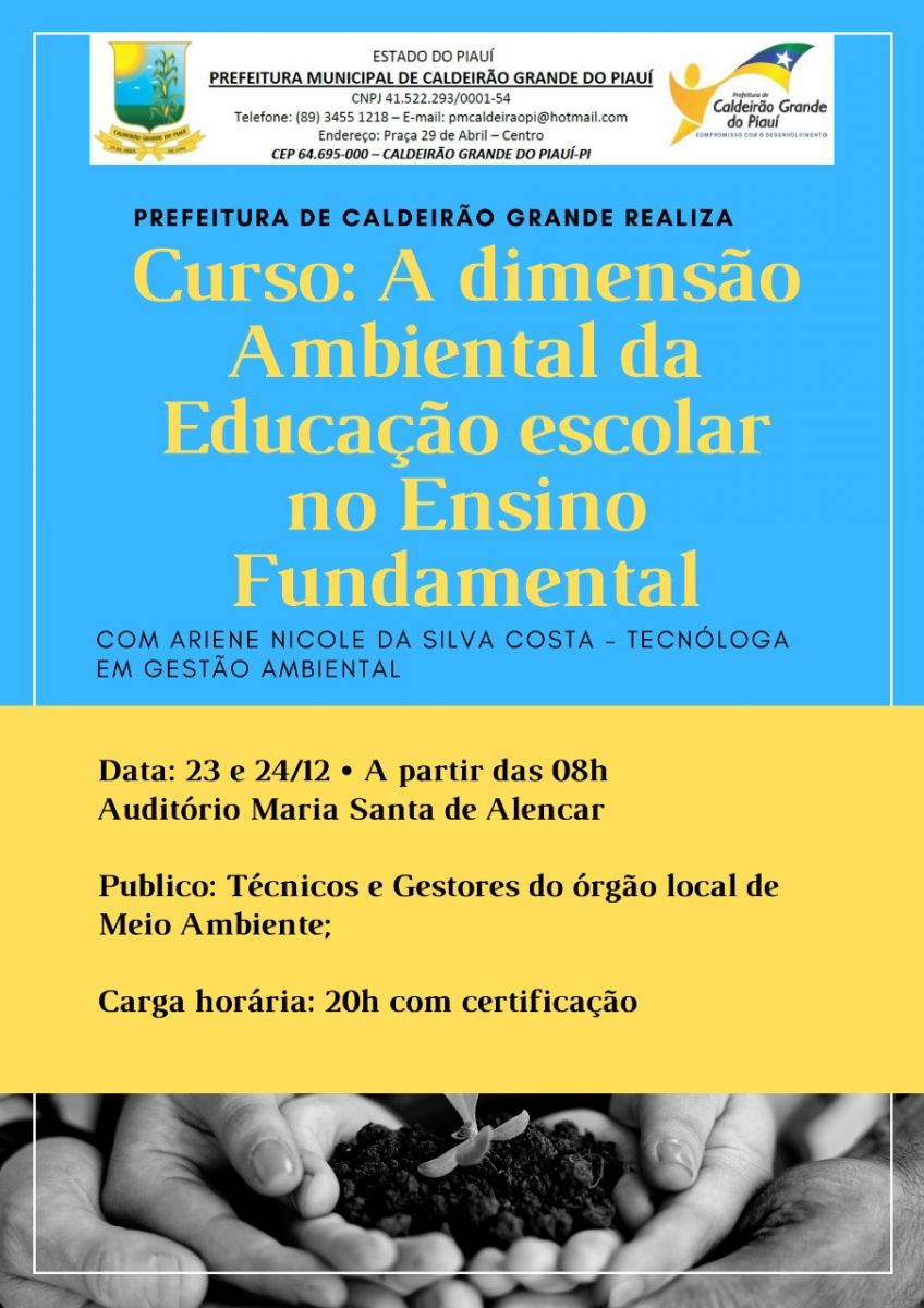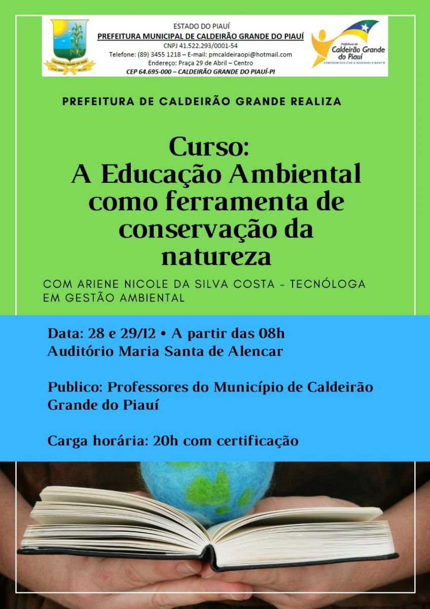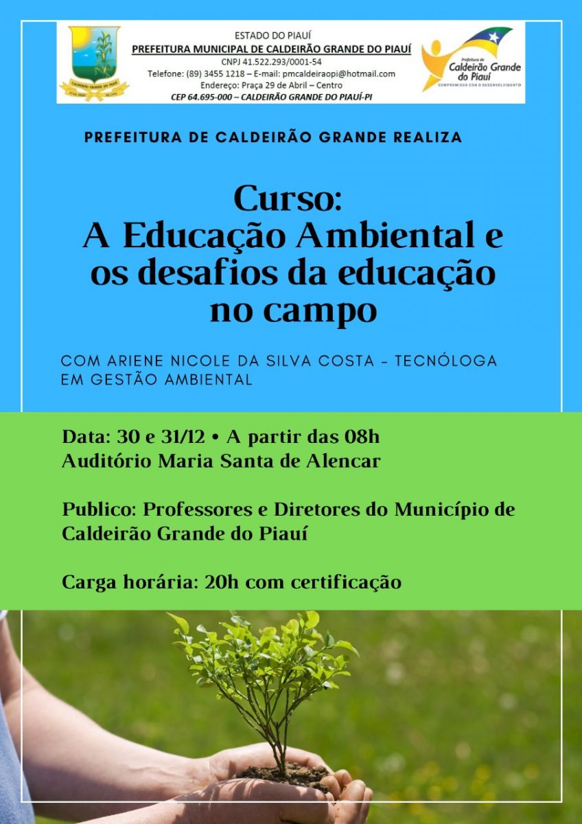 A Prefeitura Municipal de Caldeirão Grande do Piauí juntamente com a Secretaria Municipal de Agricultura e Recursos Hídricos estão promovendo vários cursos e capacitações de educação ambiental.