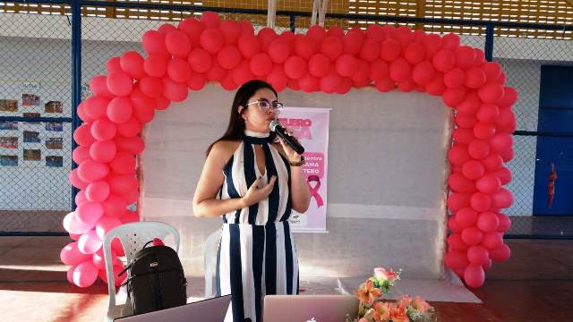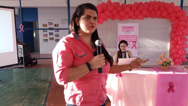 Já nesta quinta-feira, (16), as ações foram desenvolvidas na Quadra Poliesportiva do município, com mulheres da cidade. A palestrante foi a médica ginecologista Dra. Débora Santos, onde abordou temas como, mamografia, diagnóstico precoce do câncer de mama e realizou auto-exames, além de dar dicas sobre como a mulher deve cuidar de sua saúde, neste quesito.
